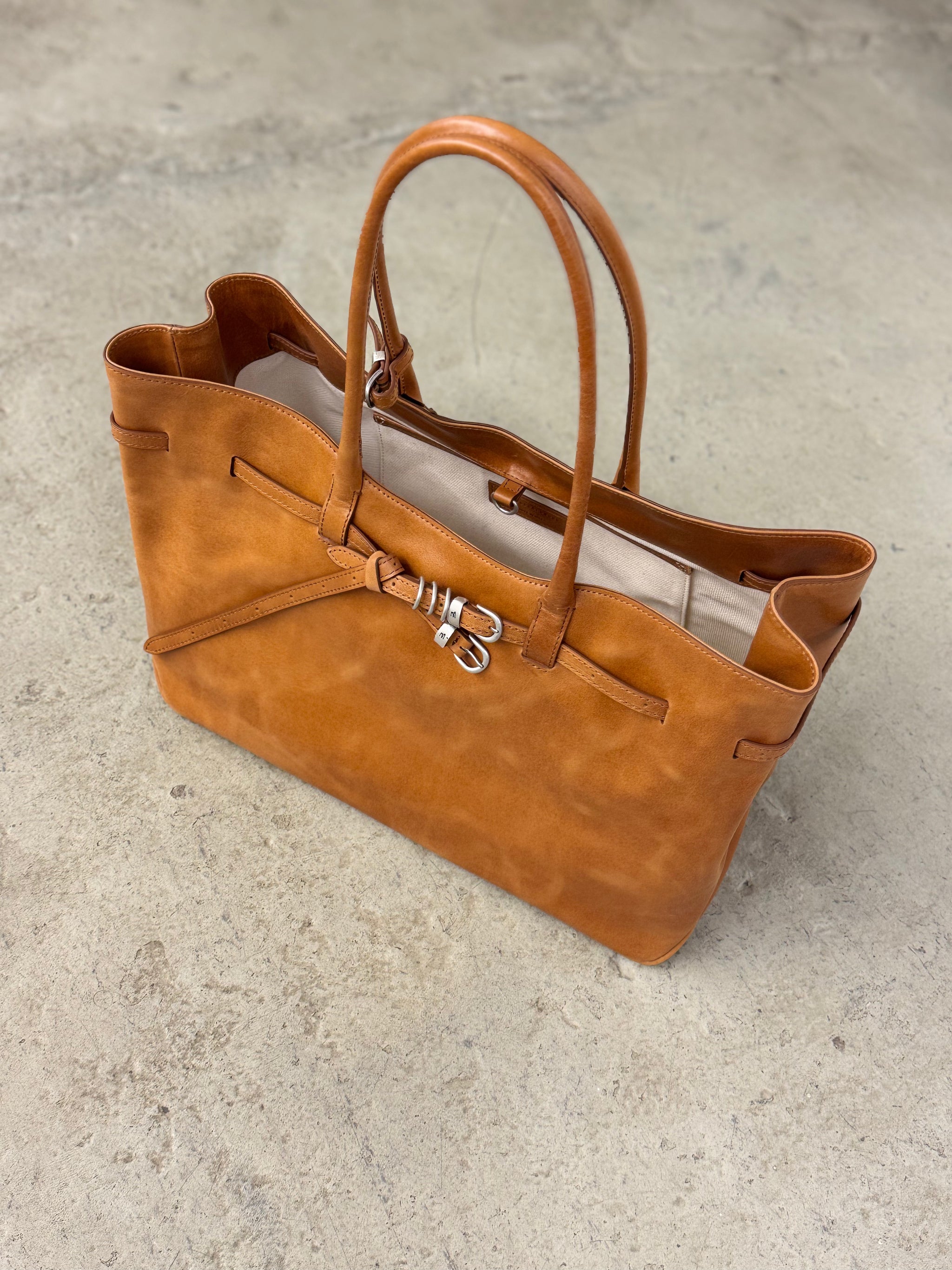 MARGESHERWOOD Big Grandma in Glattleder, Cognacbraun