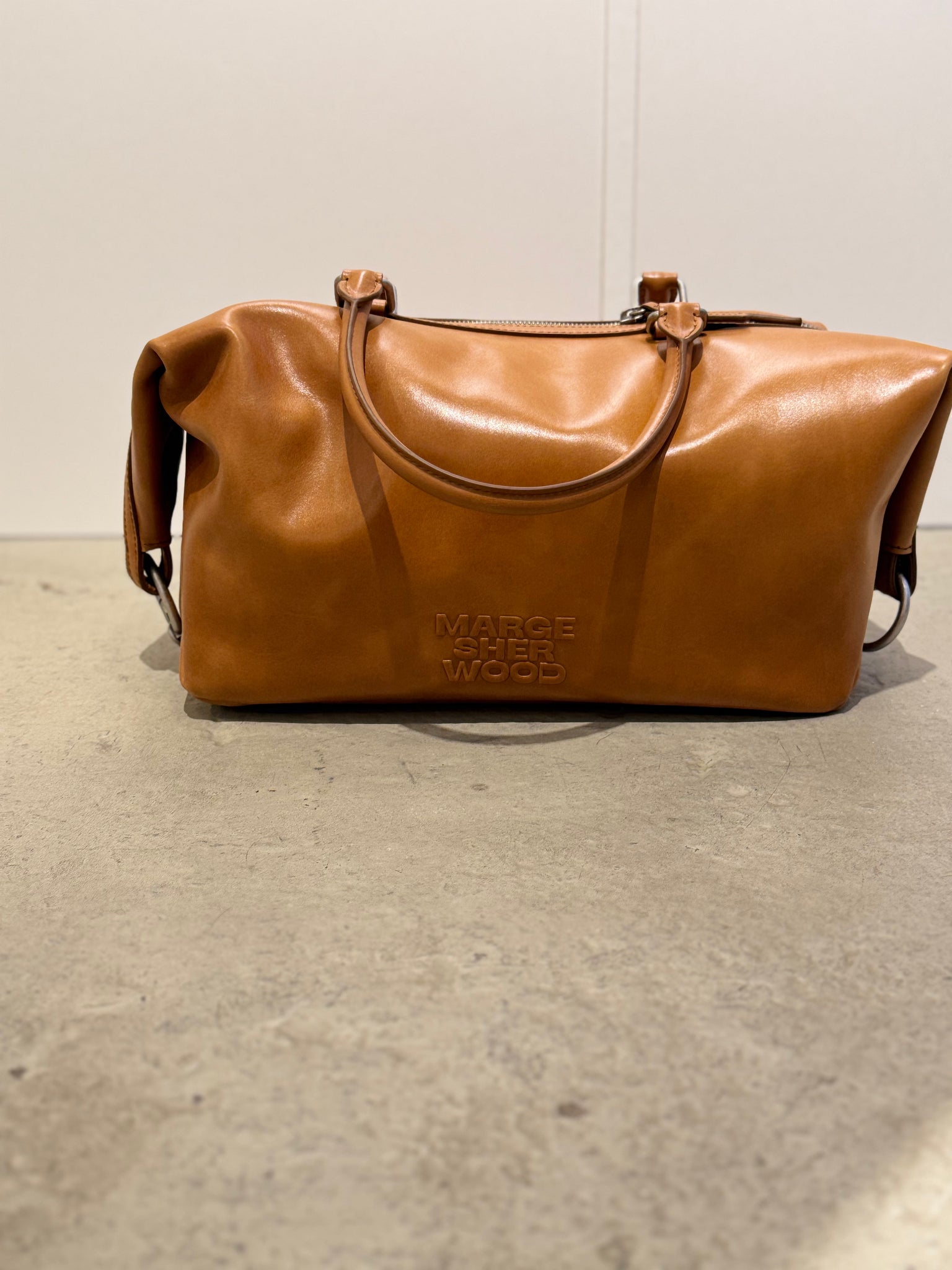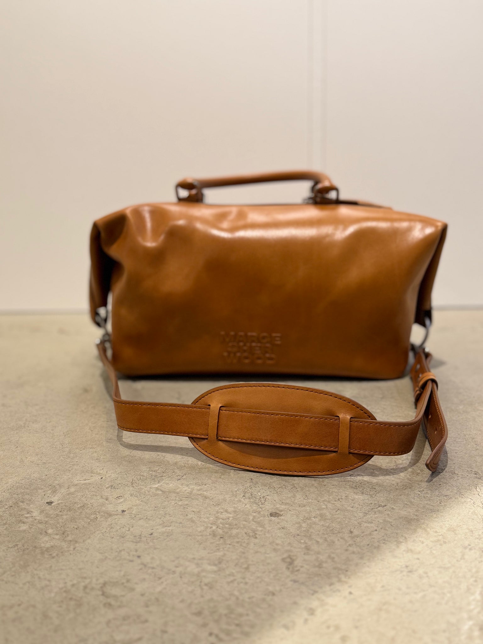 MARGESHERWOOD Cognacbraune Barreltasche mit abnehmbaren Schultergurt
