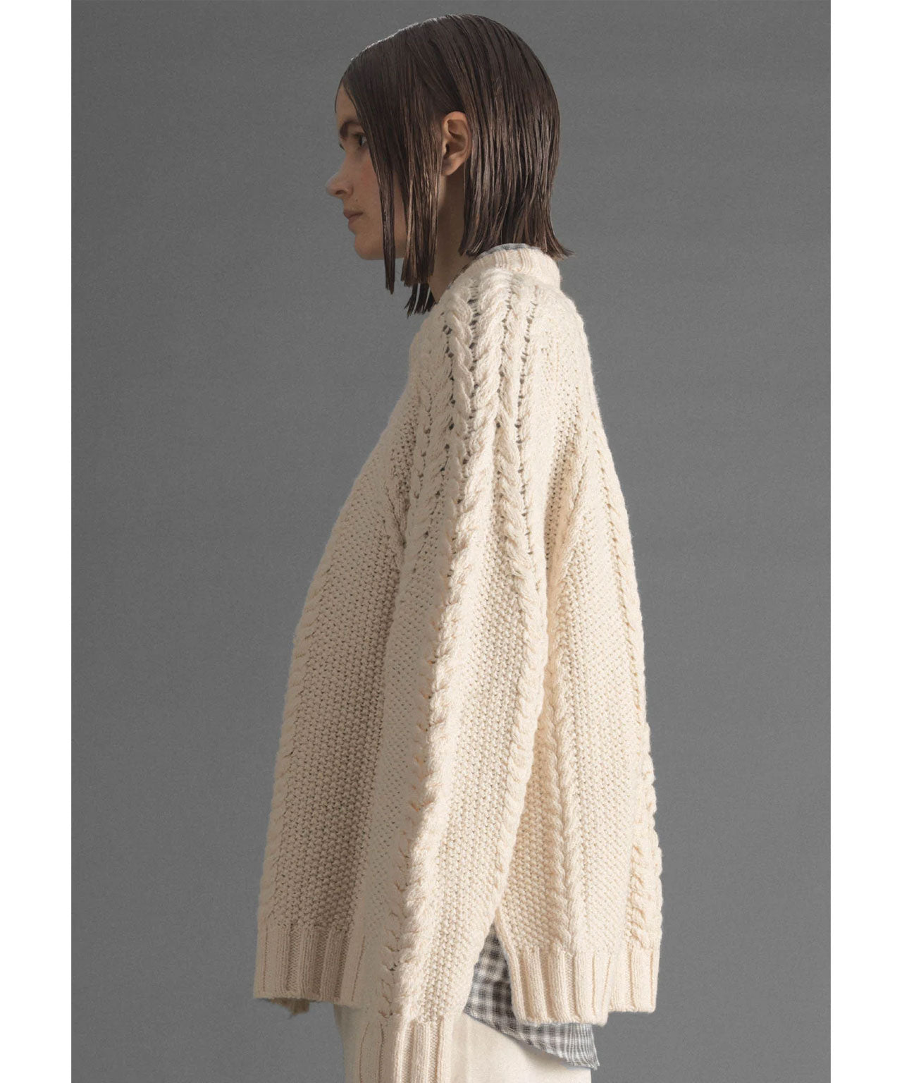 HOPE Cremefarbener Zopfstrickpullover