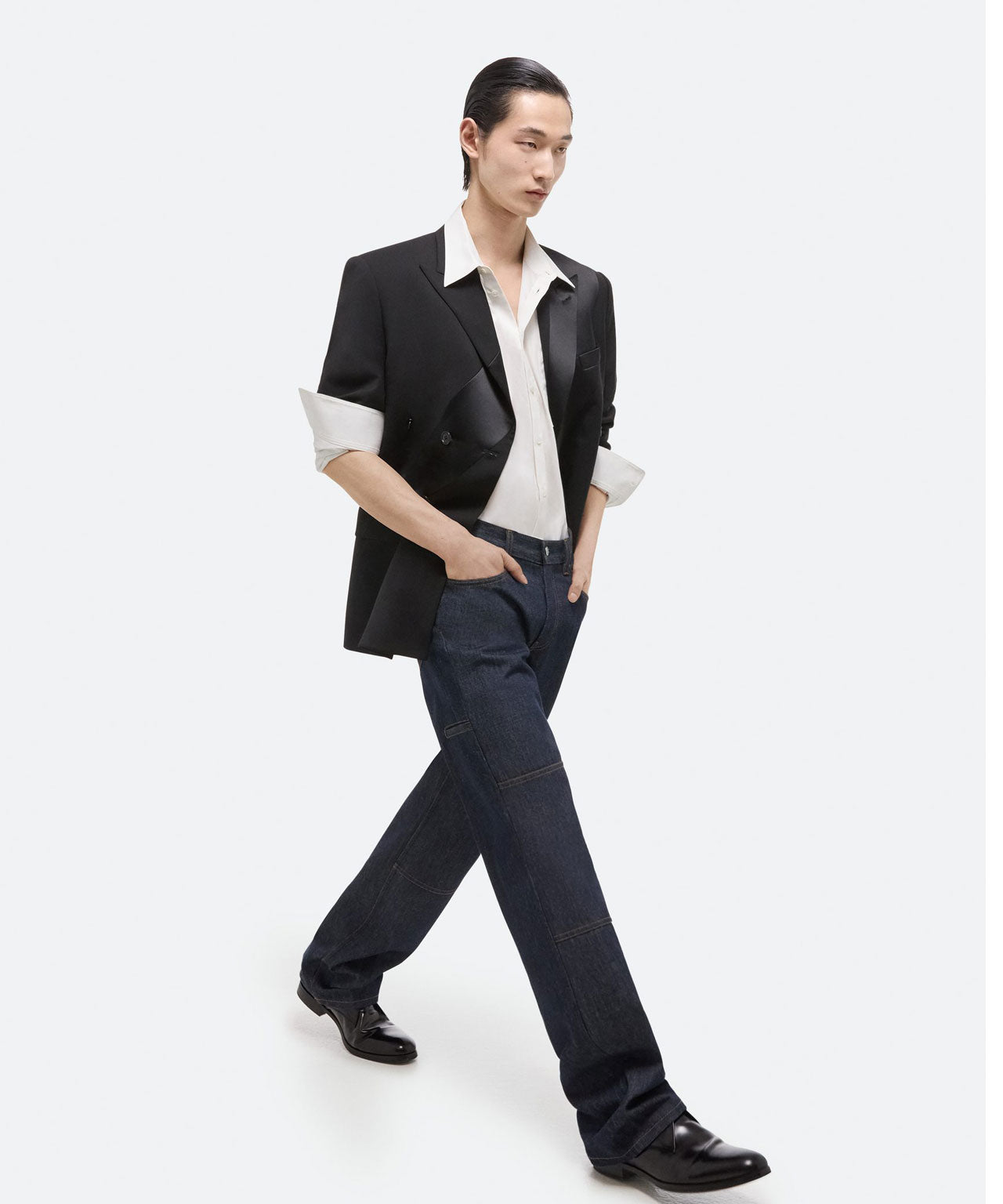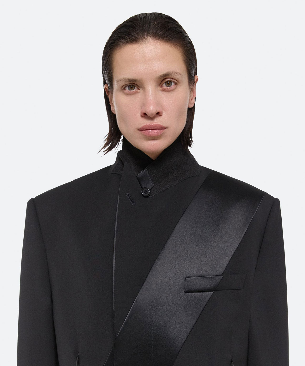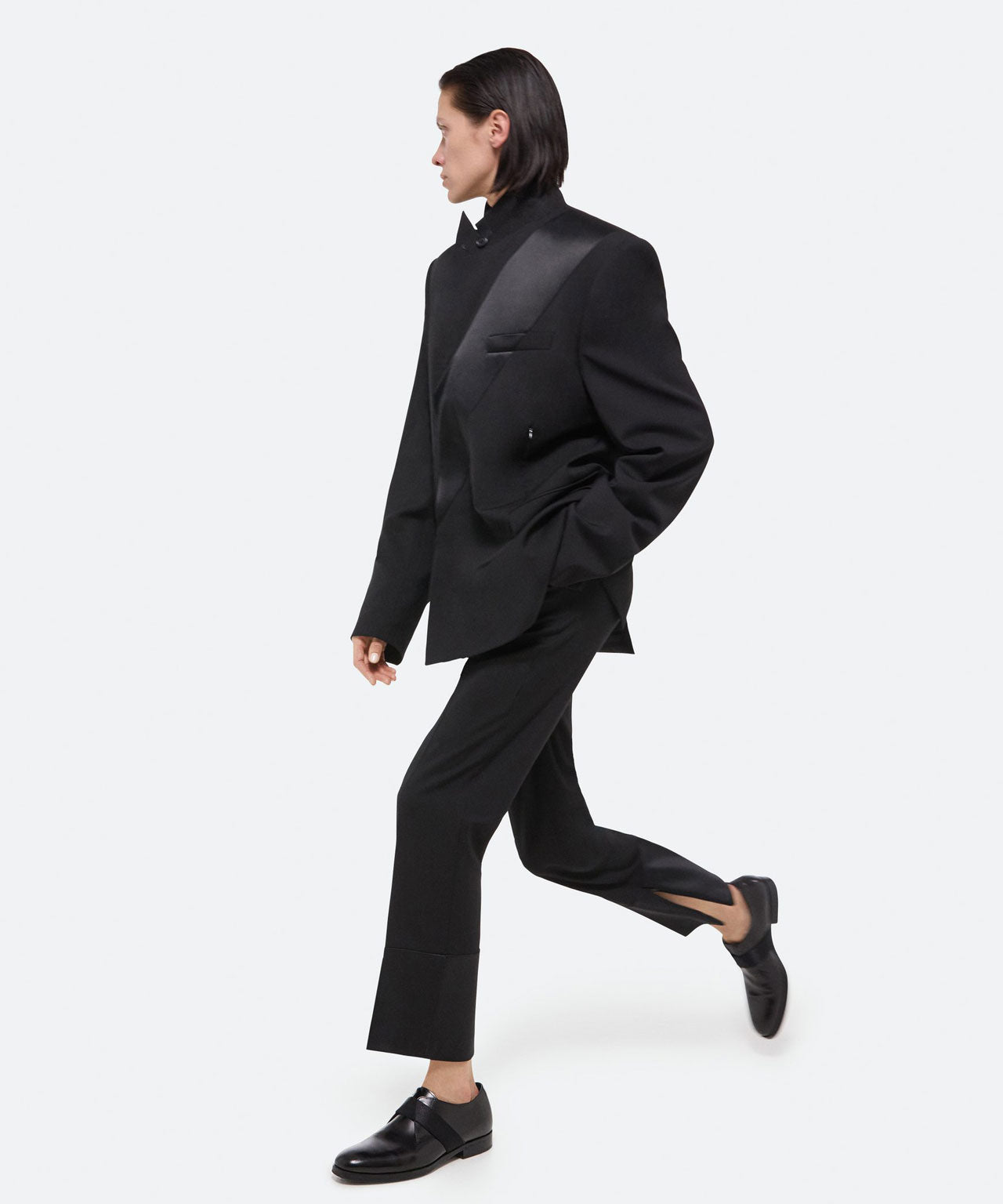 HELMUT LANG Schwarzer Anzugblazer mit Satineinsatz