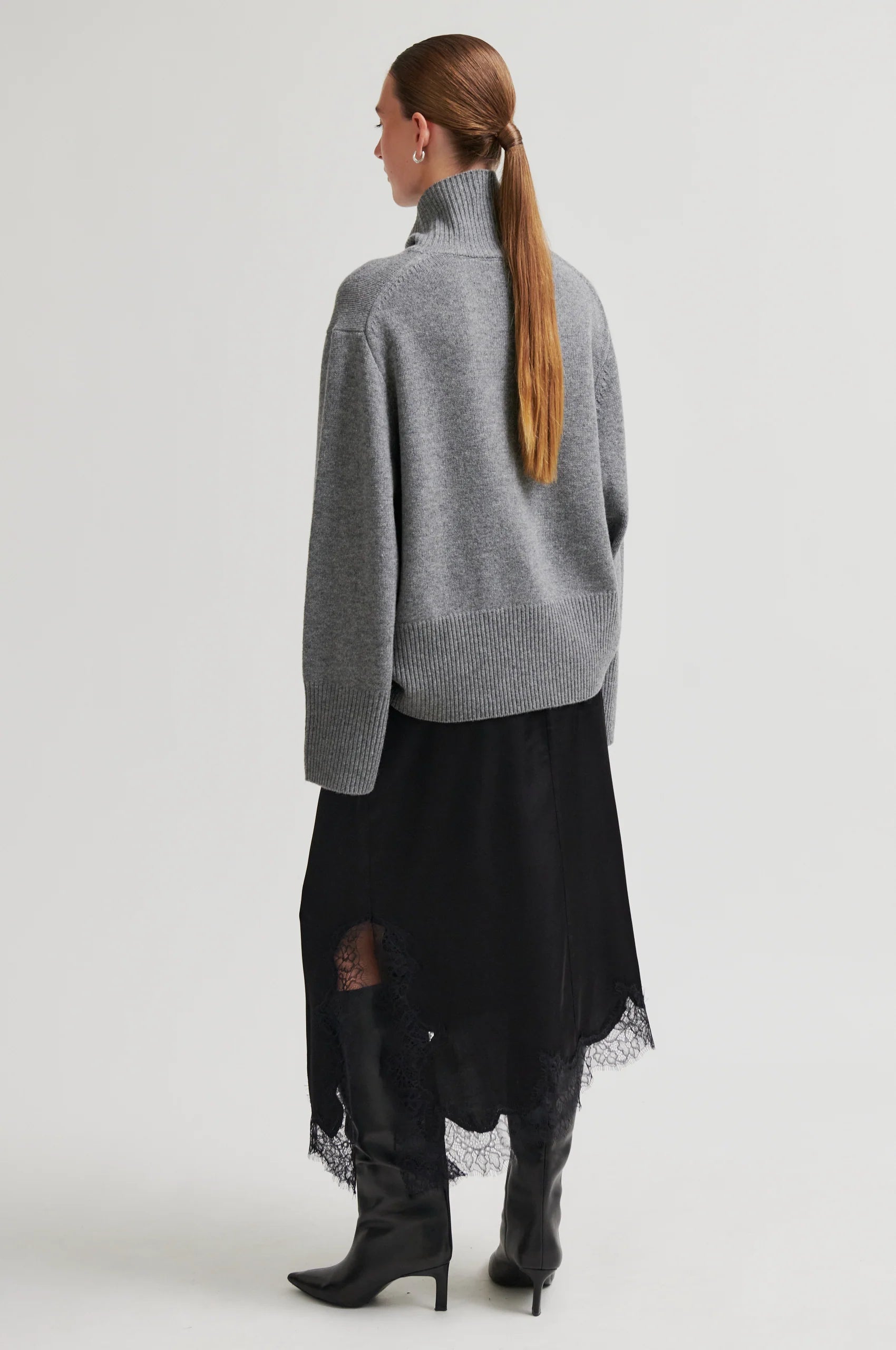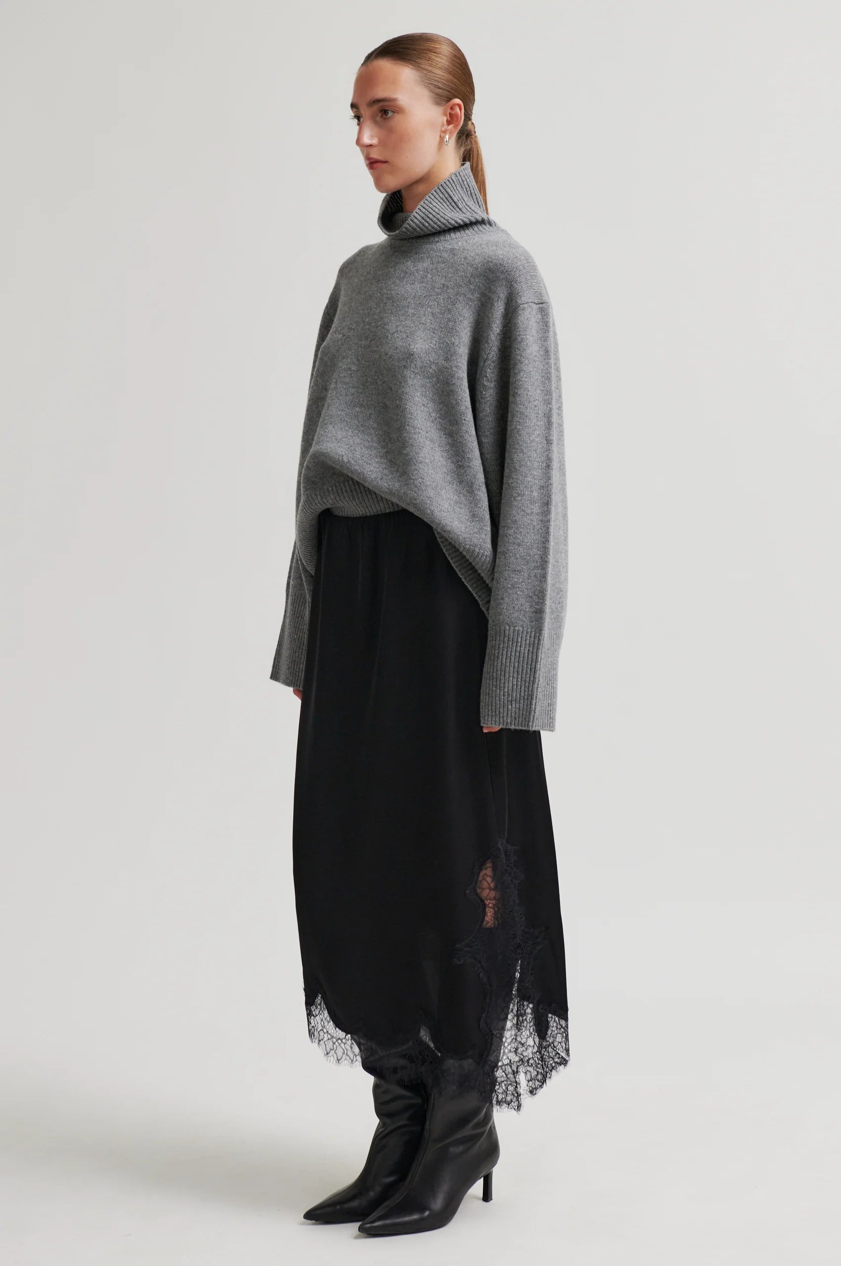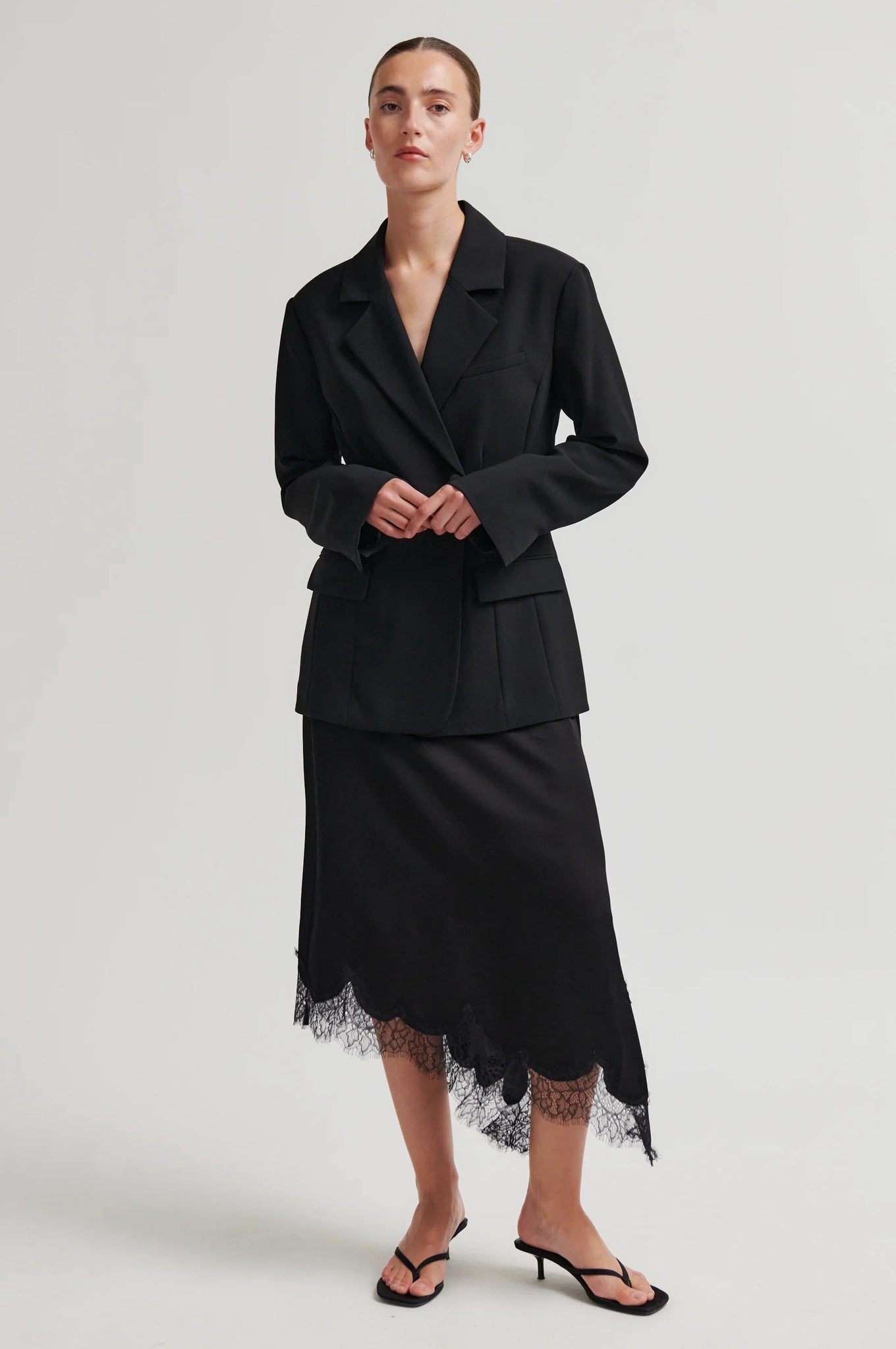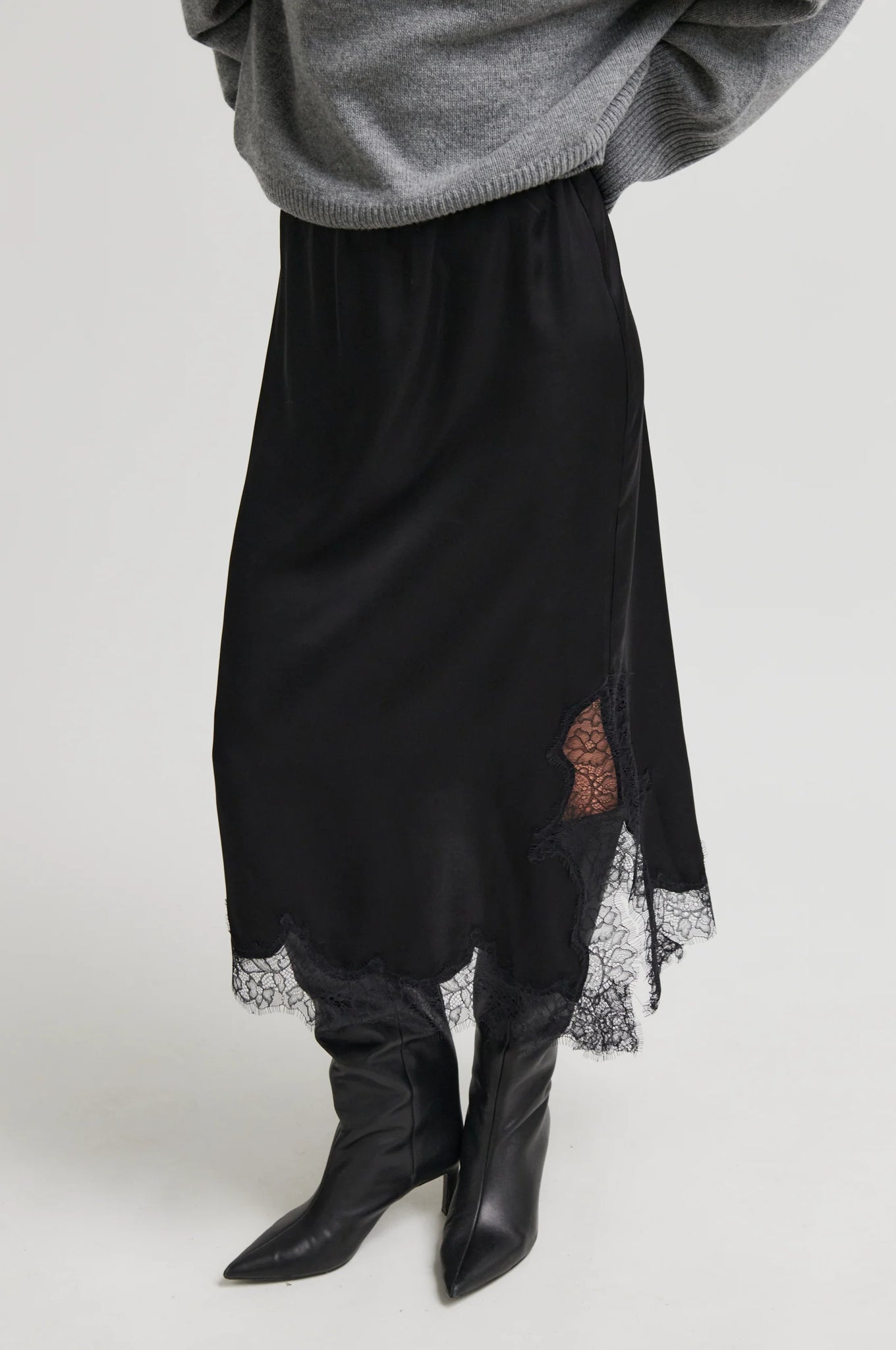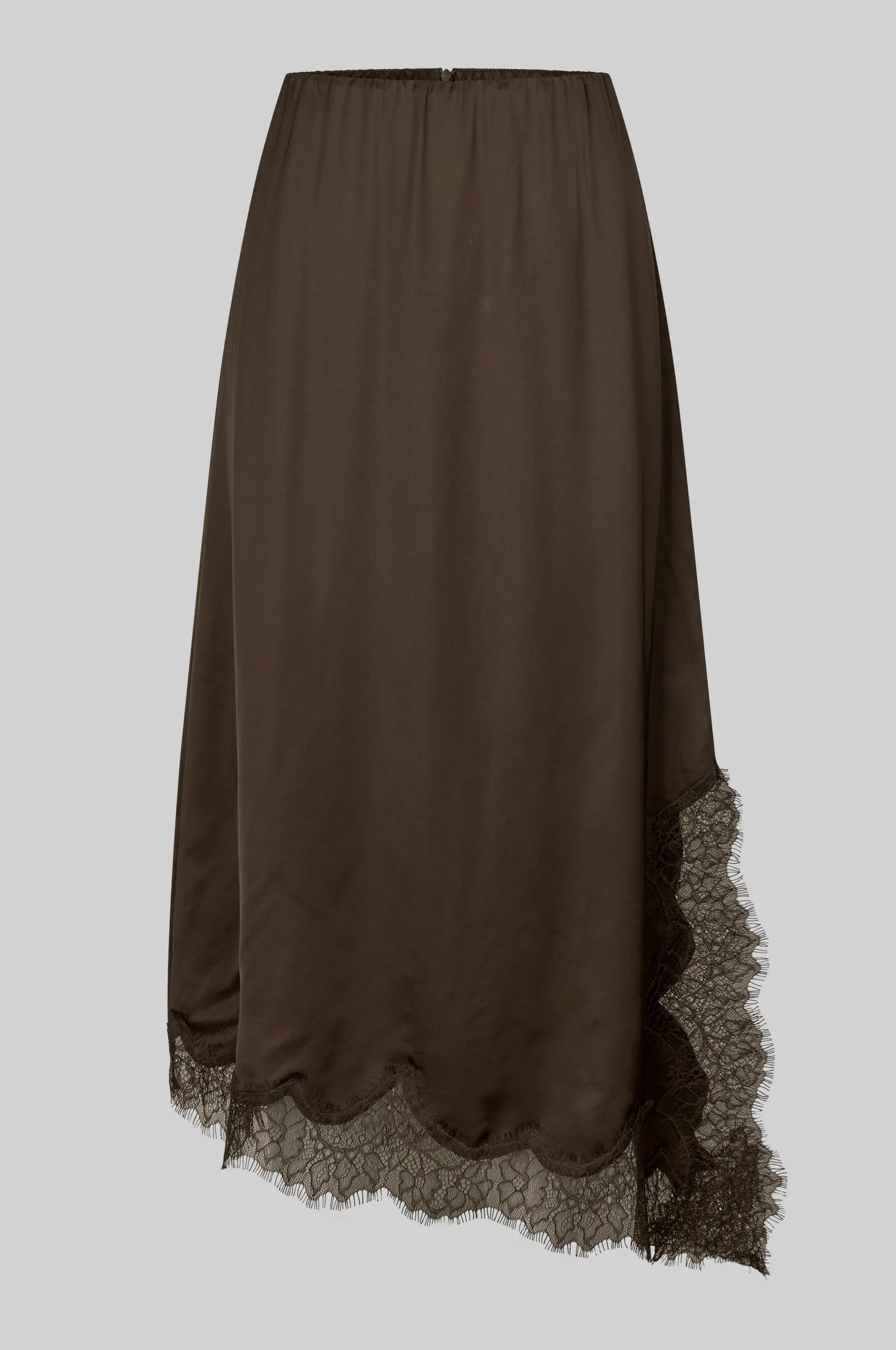 - Asymmetrischer Saum mit Spitzenbesatz